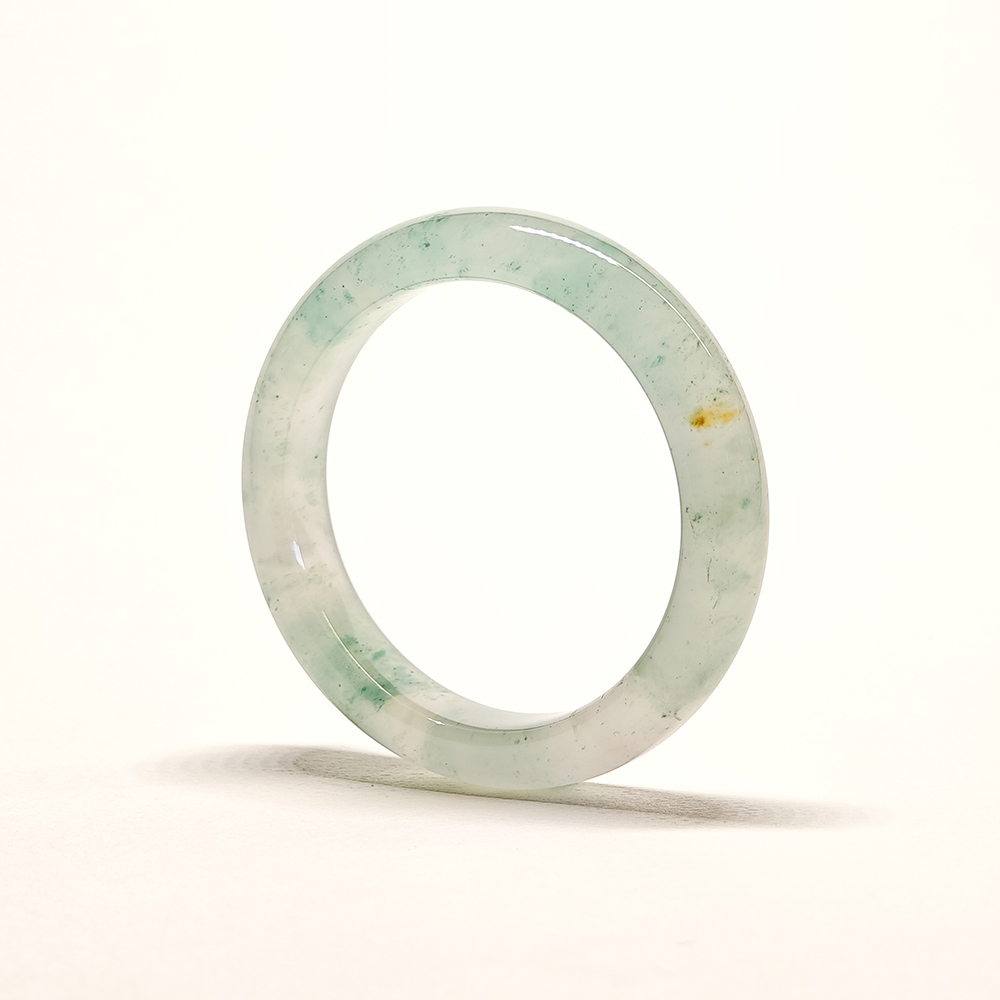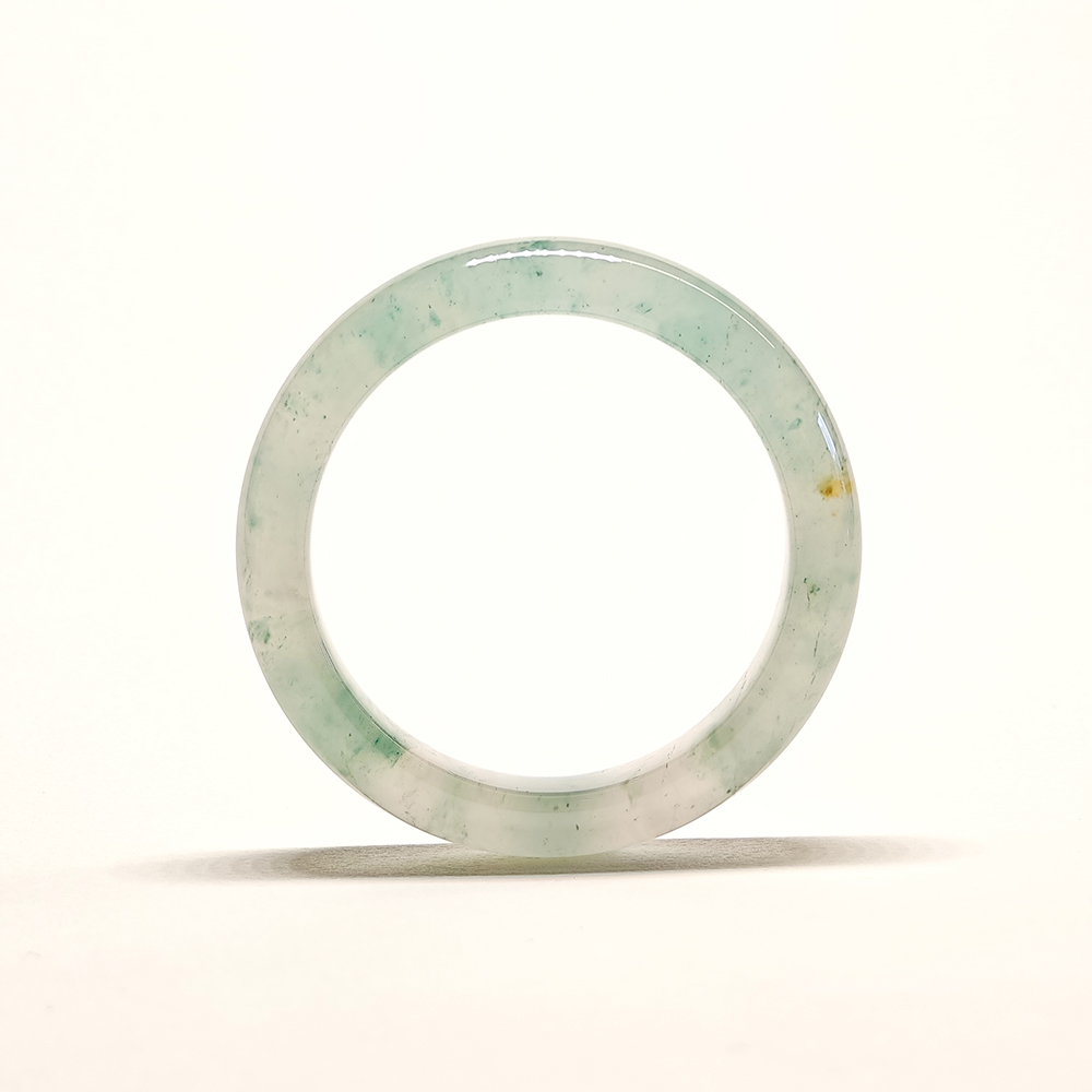 全冰非洲翠手鐲擁有極高的通透度與晶瑩剔透的質感,顯得純粹而高貴。光線穿透時,能展現清澈水潤的光澤,如同冰雪般晶亮。這種款式通常色澤淡雅,以白冰或淡綠為主,少了濃豔的色彩,卻多了一份清新脫俗之美。全冰非洲翠因稀有度高,常被視為高端收藏與典雅佩戴的象徵。無論是日常簡約風格,還是正式場合配戴,都能彰顯佩戴者的純粹氣質與高雅內涵,是極具收藏價值的經典款式。