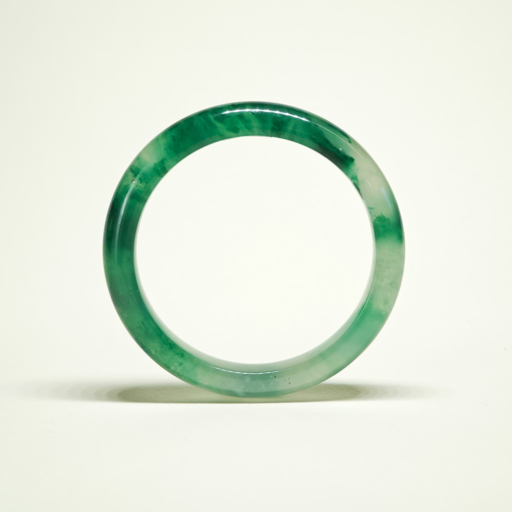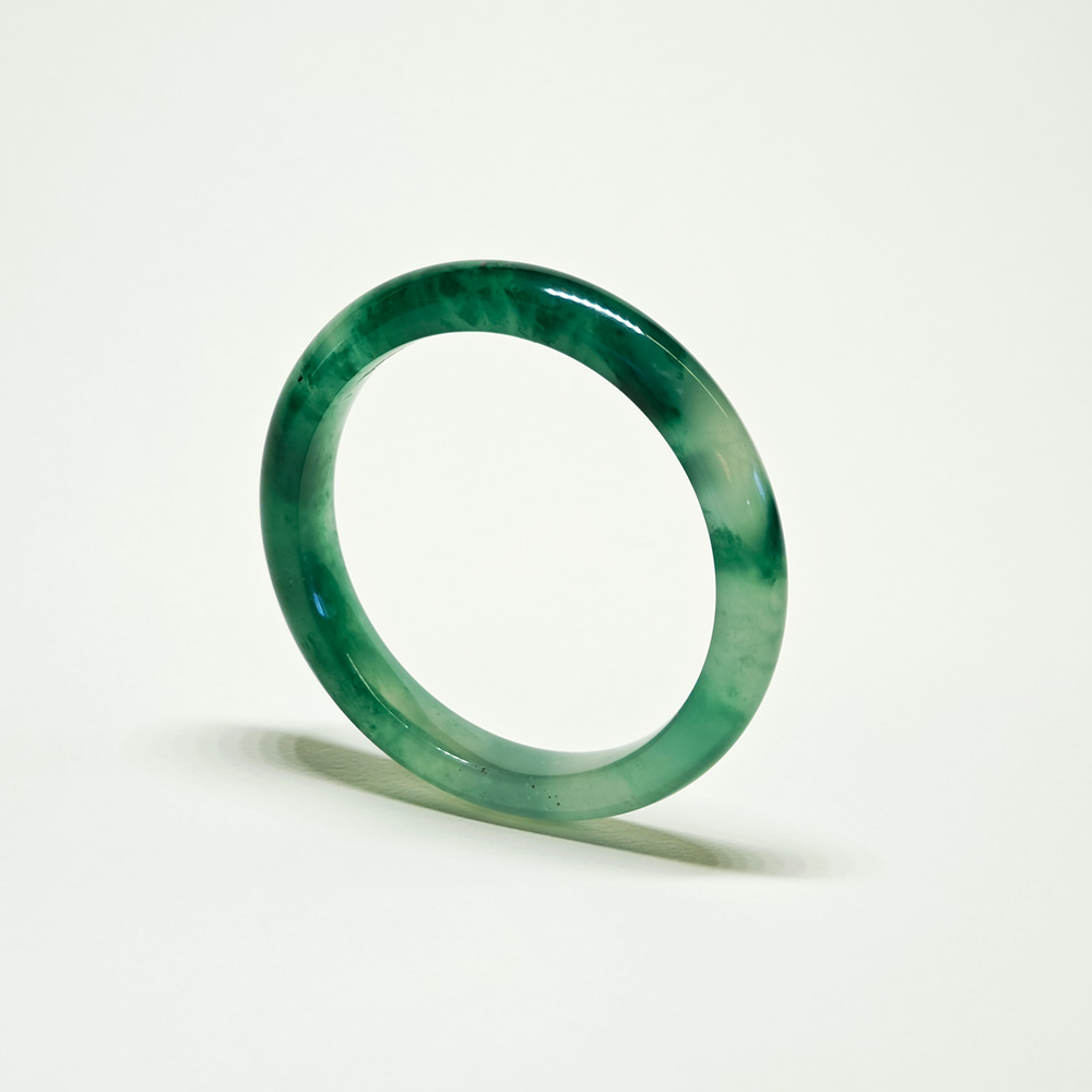 清透綠意,凝結於玉的流光。 飄花紋理獨具韻律,天然且唯一。 圓潤線條輕貼手腕,展現恬靜光澤。 俐落而純粹的美感,適合每日佩戴。 一件以低調形容、卻無法忽視的綠色精品。