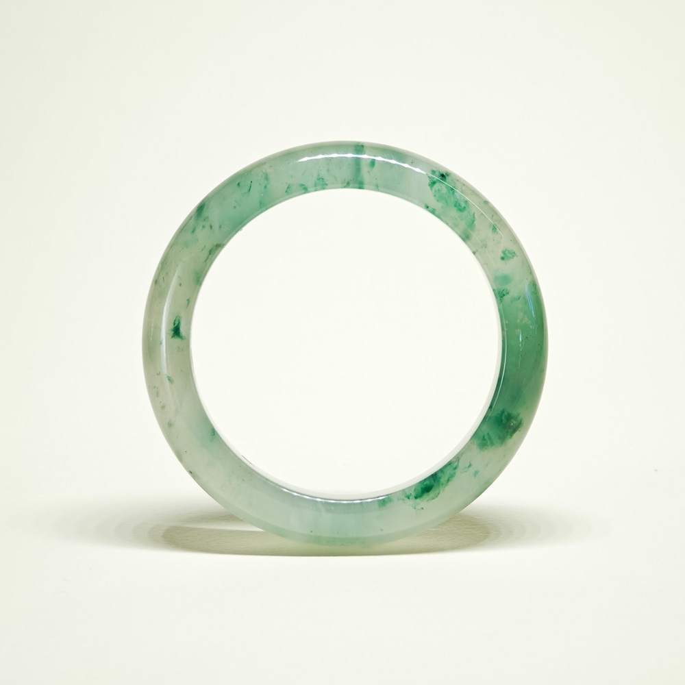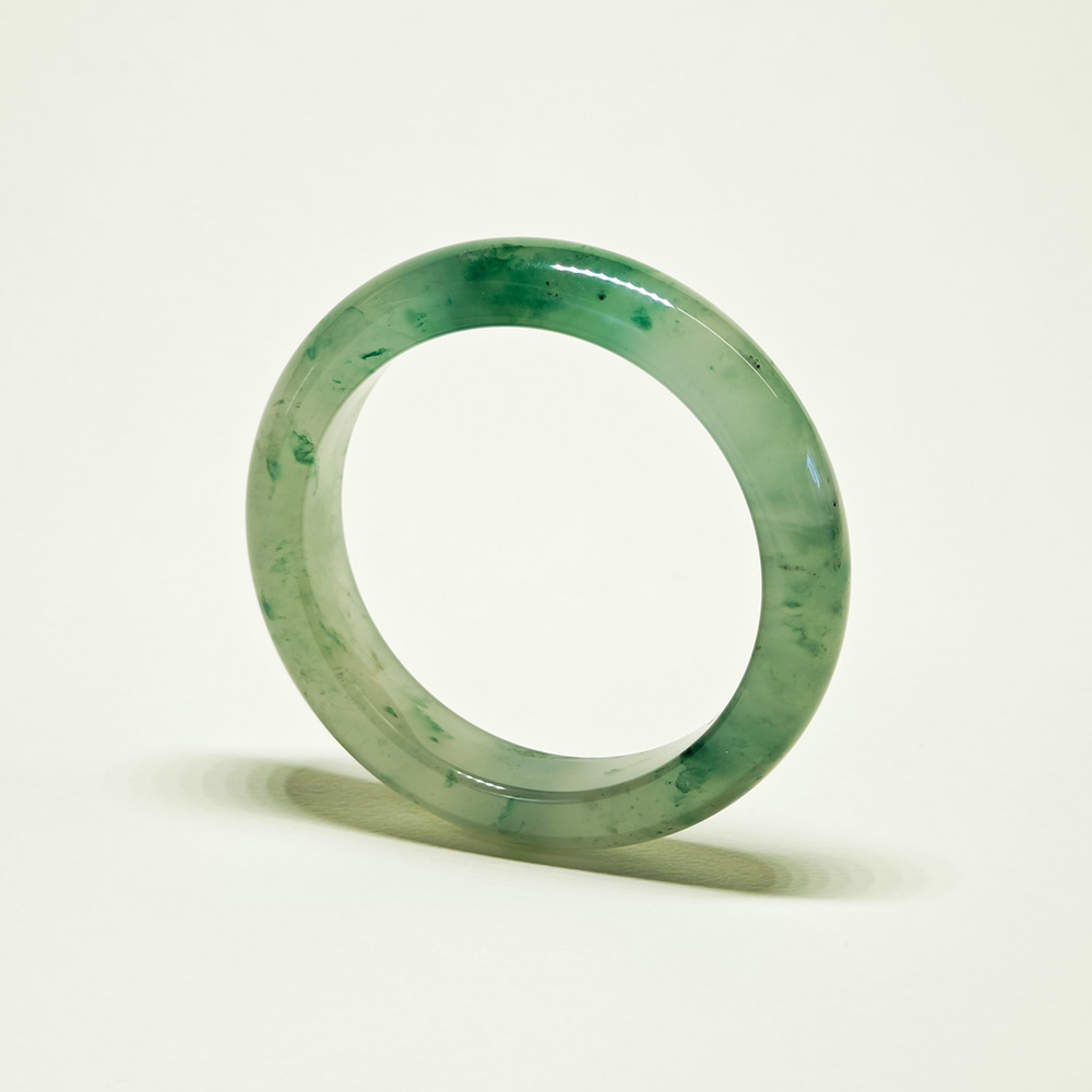 清透綠意,凝結於玉的流光。 飄花紋理獨具韻律,天然且唯一。 圓潤線條輕貼手腕,展現恬靜光澤。 俐落而純粹的美感,適合每日佩戴。 一件以低調形容、卻無法忽視的綠色精品。